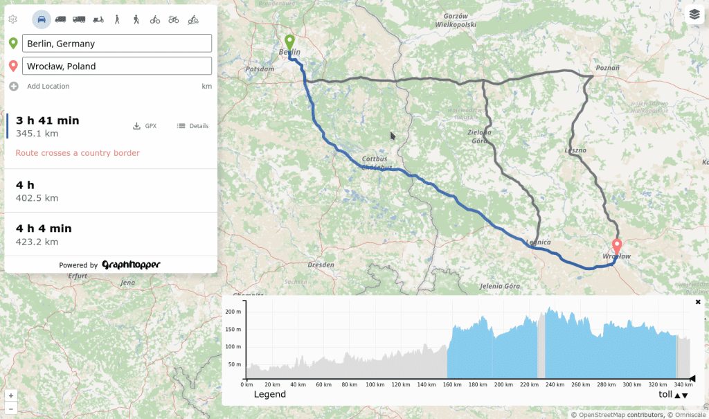 GraphHopper Maps is the face of the open source GraphHopper routing engine and a fully featured route planner in the browser.