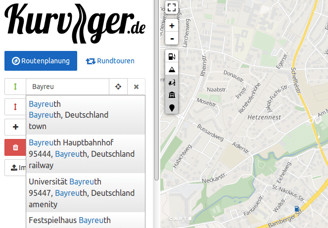 Kurviger is a route planner for motorcyclists. It uses the GraphHopper Geocoding API to provide its users a simple way to enter their destination. The routing engine under the hood is a customized GraphHopper instance, optimized especially for motorcycles. The author is also a frequent contributor.